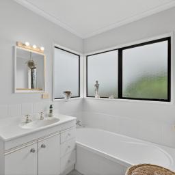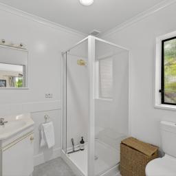 - Bedroom downstairs has access through sliding doors outside, as well as access to the Jack n Jill style bathroom