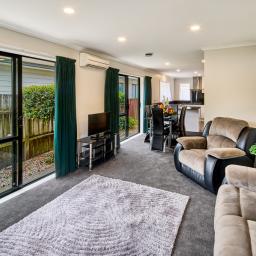 Recently upgraded with new carpet, fresh interior paint, updated lighting, and modernised bathroom and kitchen, the home feels light, bright and contemporary from the moment you walk in. The open-plan living area includes a DVS ventilation system and heat pumps, ensuring year-round warmth, dryness and comfort.