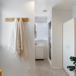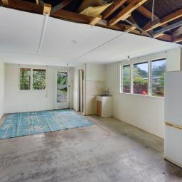 The rear of the garage has a covered area to the east, handy for hanging the laundry or convert the garage and make the most of the plumbing out there and create an additional separate studio space for extra family or guests.