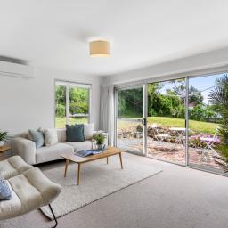 Light-filled and welcoming, the generous living space forms the heart of this home. Elevated to capture all-day sun, it offers an easy connection to a flat, north-facing lawn-an ideal spot for relaxed entertaining, kids, or pets.