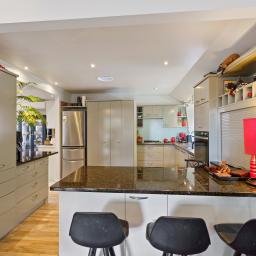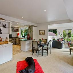 Upstairs with open dining, exquisite cook's kitchen with views to the reserve, living with a heatpump and cracker woodburner to keep things toasty in the cooler months. North-facing balcony with tumbling deep pink bougainvillea, east-facing generous deck for afternoon barbeques or aperitifs. An excellent area to cherish with friends and family or entertain, plus additional w/c and office space or fourth bedroom.