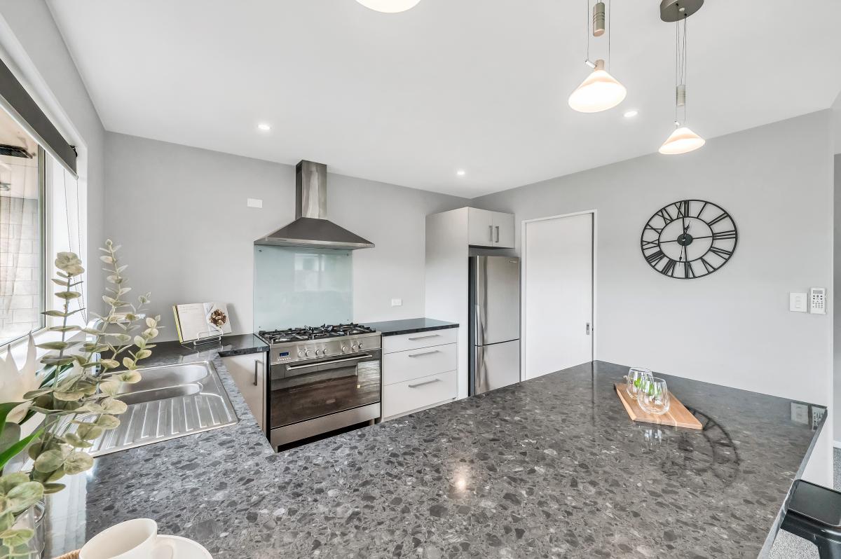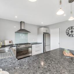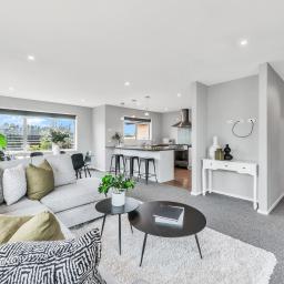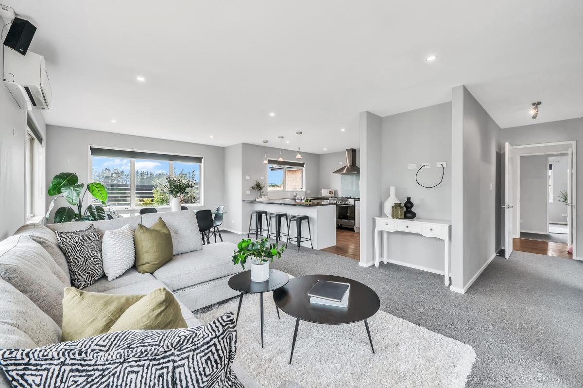 Positioned for maximum sun this 193 m2 home comprises of a large family sized kitchen which features a butlers pantry, 900mm stove with gas hob and loads of bench space and adjoins the designated dining and everyday family living area and beyond to a separate formal living room. There is easy access to the extensive north and west facing decking for easy outdoor living from the dining area and formal lounge as well.