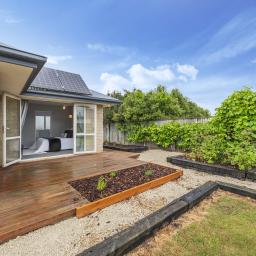 The 688m2 section is fenced for privacy and pets plus with its box gardens and mature plantings is designed for easy care maintenance.