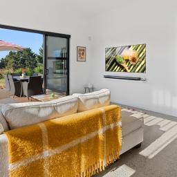 Built in 2016, this 239m2 home showcases contemporary elegance with its spacious open-plan living areas and high-quality finishes. The kitchen is both stylish and functional, seamlessly connecting to the living area, perfect for hosting family gatherings or enjoying quiet evenings. With three bedrooms and two well-appointed bathrooms, there's ample space for everyone to relax in comfort. The wood burner and heat pump ensure year-round coziness, while double glazing and aluminium joinery enhance energy efficiency.