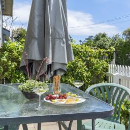 The spacious studio offers neutral décor, a slider from the patio, a portable divider if you wish to partially screen your bed, dining space to host dinner guests and a good sized kitchen with full stove. The bathroom offers shower and toilet, and the very spacious laundry area allows for storage. There is off-street parking or additional entertaining space to the rear of the Unit.