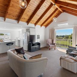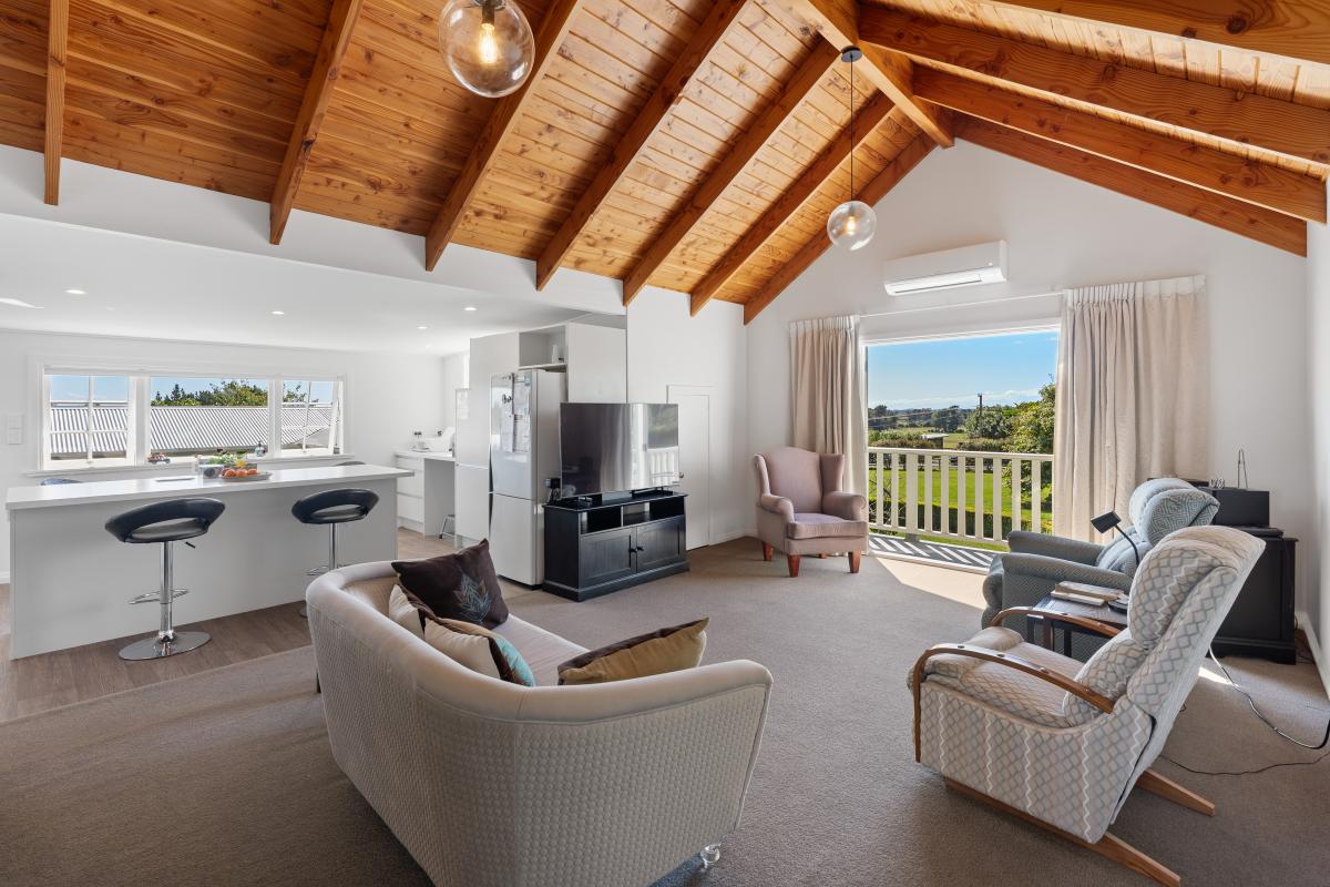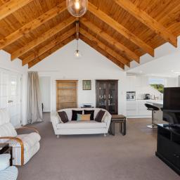 Neighbouring horses are the effective and picturesque keepers of the paddock to the east. The orchard has been beautifully appointed by current owners to grow in staggered heights from tallest at the southern boundary, from pine nuts down to avocados, cherry, almonds, and tamarillo down to smaller citrus trees. Keeping the orchard watered is easy with a generous daily supply from the Te Horo Water Scheme, trickle-fed and stored in the holding tank with three tap access points to the orchard and vegetable beds.
