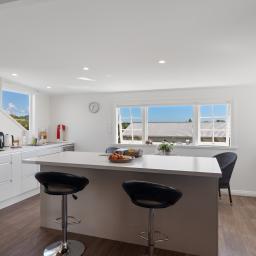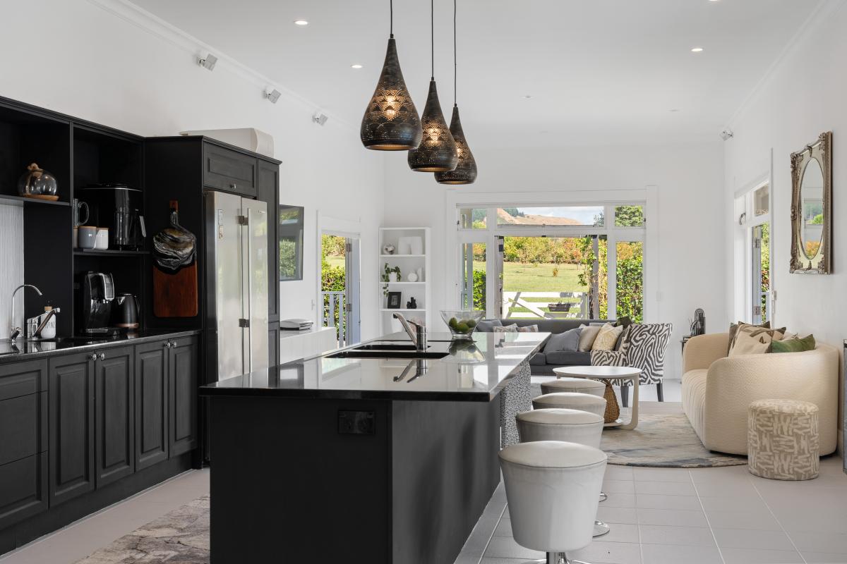 Living flows to an exquisite dining area and further on to a truly breathtaking kitchen, designed to feel like yet another lavish living area with plenty of seating to relax and chat with the chef of the house. Crank up the speaker system, keep things cosy with underfloor heating, this is an excellent place to host a family and friends for a function! Step down to another family space with outdoor flow both east and west, pick the best spot for the reason or season. Toast your marshmallows to the east, jump in the spa to the west or take a quiet stroll down to the orchard to pick some fruit.