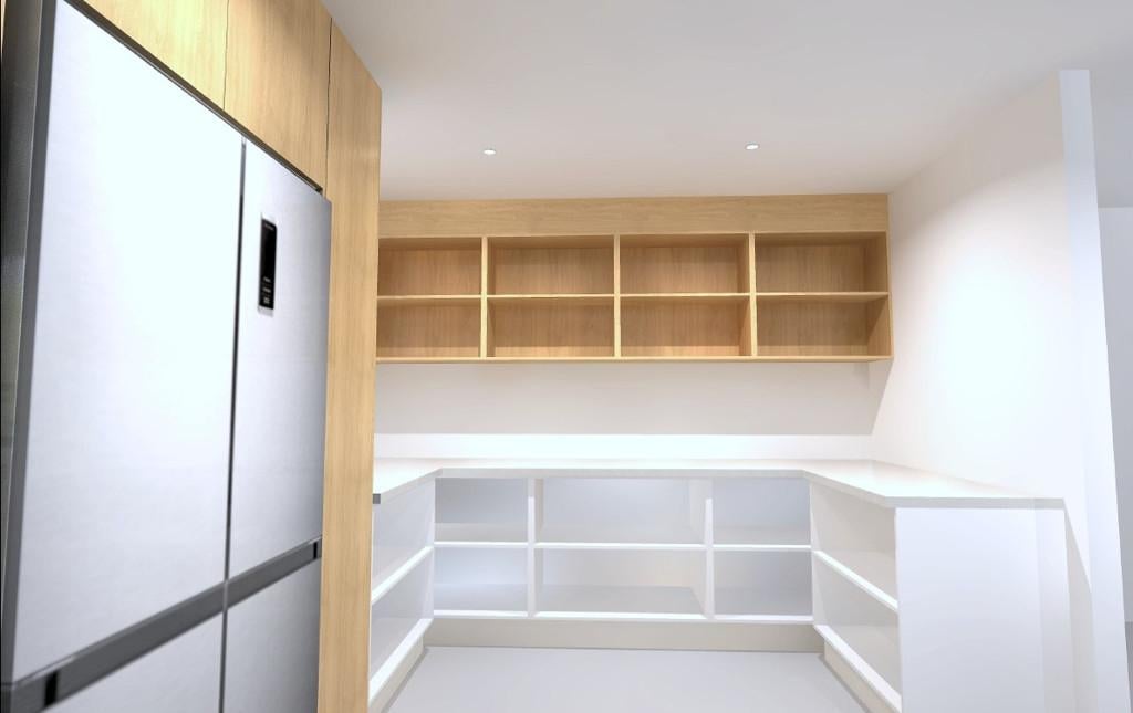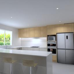 - Designer kitchen with engineered stone benchtop complete with waterfall edge