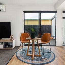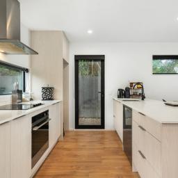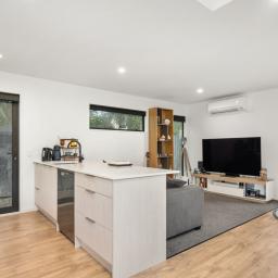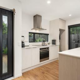 The open plan kitchen, dining and living area is generous and light filled, creating a space that feels welcoming and practical. The kitchen is modern with plenty of bench space and cupboards, perfect for those who enjoy cooking or entertaining. Glass sliding doors open to a private patio, ideal for relaxing outdoors.