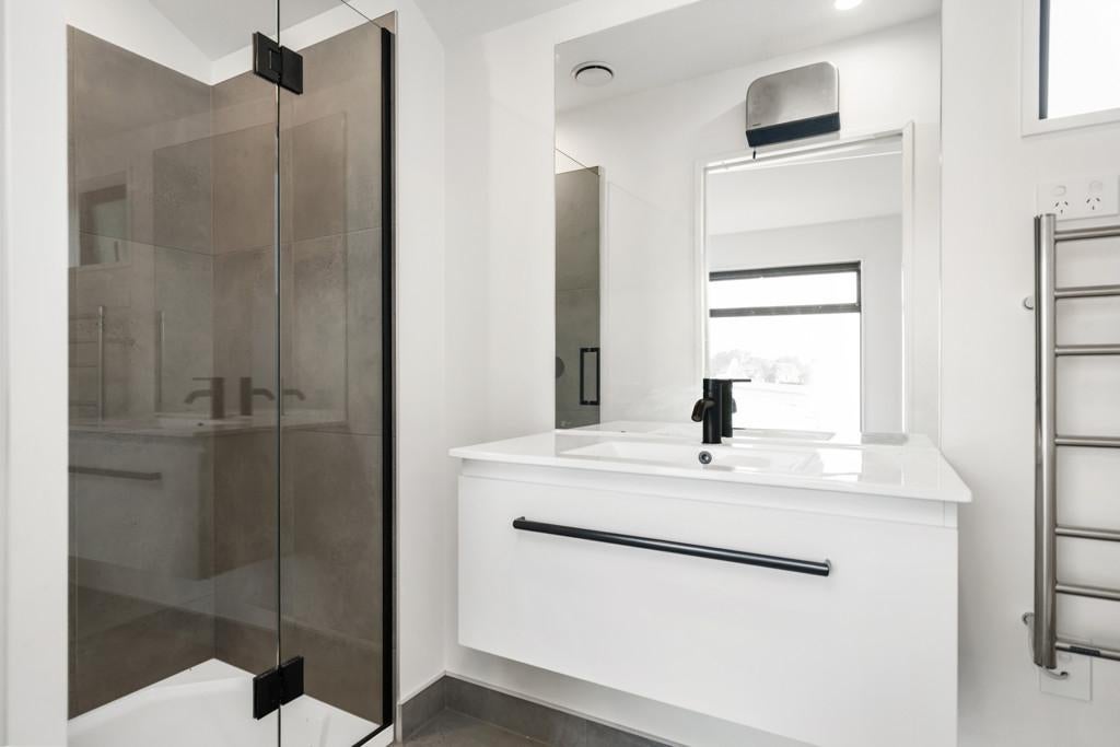 Upstairs, there are two sun filled double bedrooms, each with its own ensuite and double wardrobe. One bedroom even has access to a large storage room, a rare bonus for townhouse living.