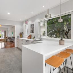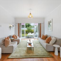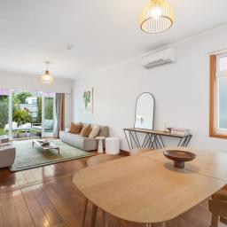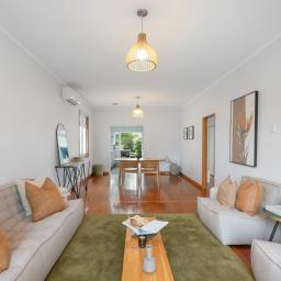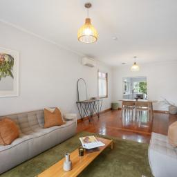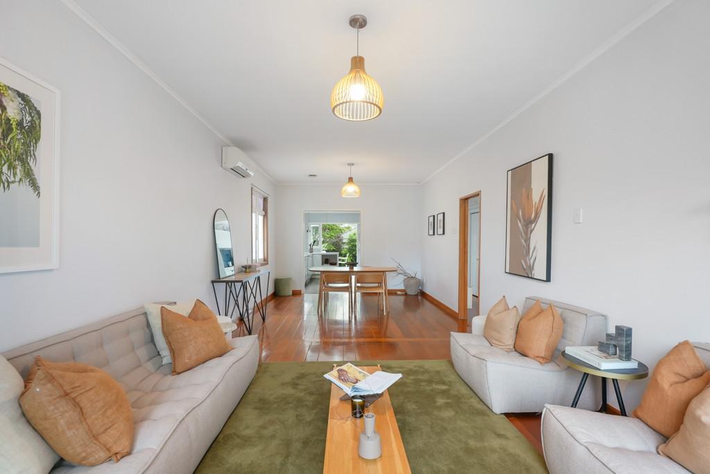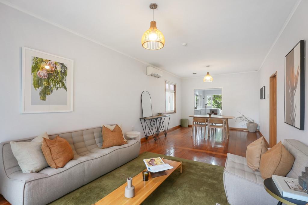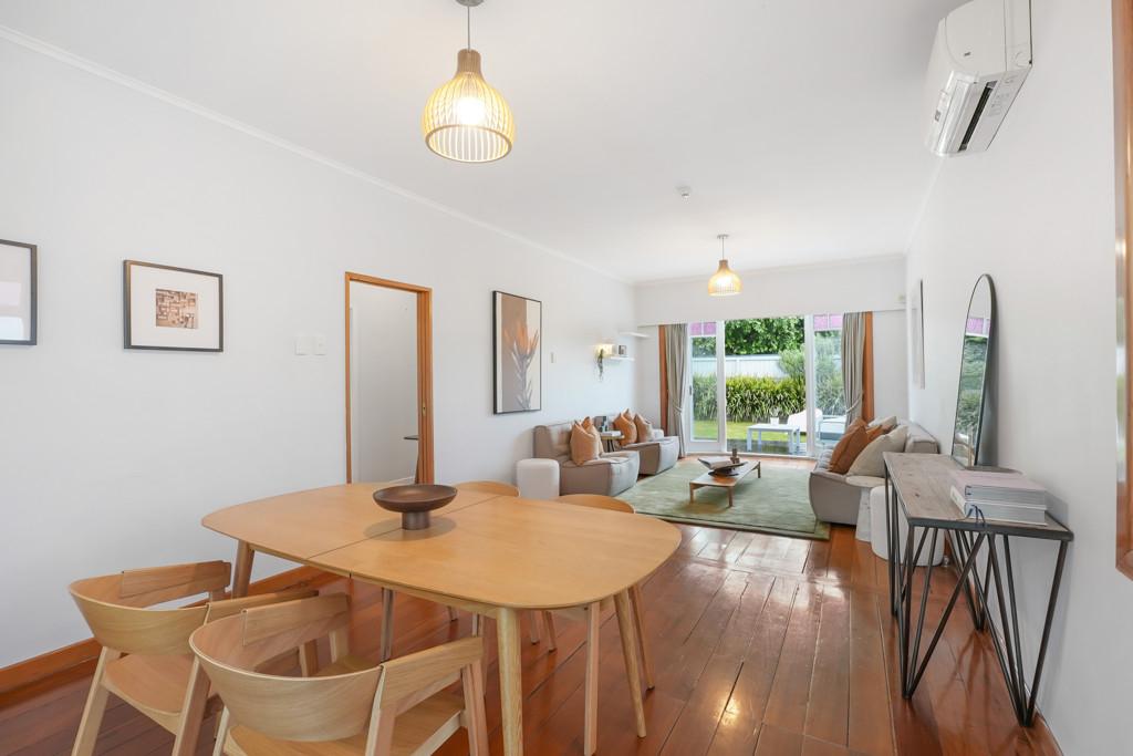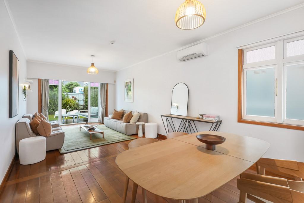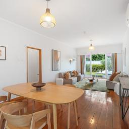 Step inside and you're met with a light-filled open-plan kitchen, living, and dining area, with polished hardwood floors that make it relaxed and welcoming, and plenty of flexibility for how you choose to arrange and live in it.