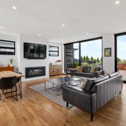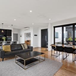 With thoughtfully designed details throughout, this home combines practicality with aesthetic appeal. Enjoy features like sliding doors that lead to the outdoor area, high ceilings, and a cozy corner couch for those lazy afternoons.