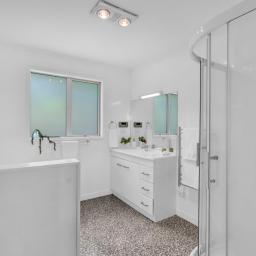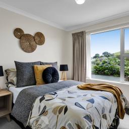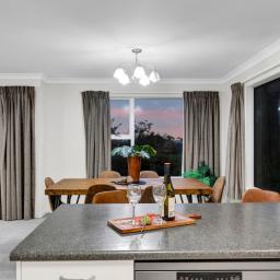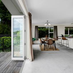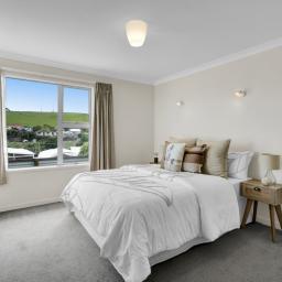 With a total floor area of 223sqm, the home features open-plan living, dining, and kitchen spaces. The generous living area forms the heart of the home, thoughtfully designed to capture panoramic views-stretching from the mountain in the south to the Tasman Sea in the north. The sun filled kitchen includes a spacious butler's pantry, while the stacker door off the dining area opens to a deck perfectly positioned for enjoying relaxed evenings, coastal breezes, and unforgettable West Coast sunsets.