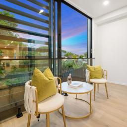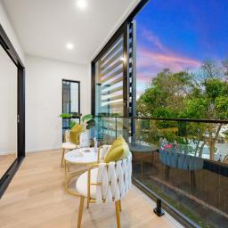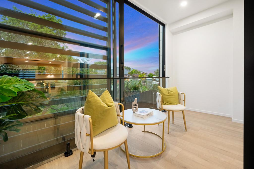 The crown jewel: a fully enclosed balcony with floor-to-ceiling glass, creating a sunroom-style retreat perfect for morning coffee or evening wine, all year round.