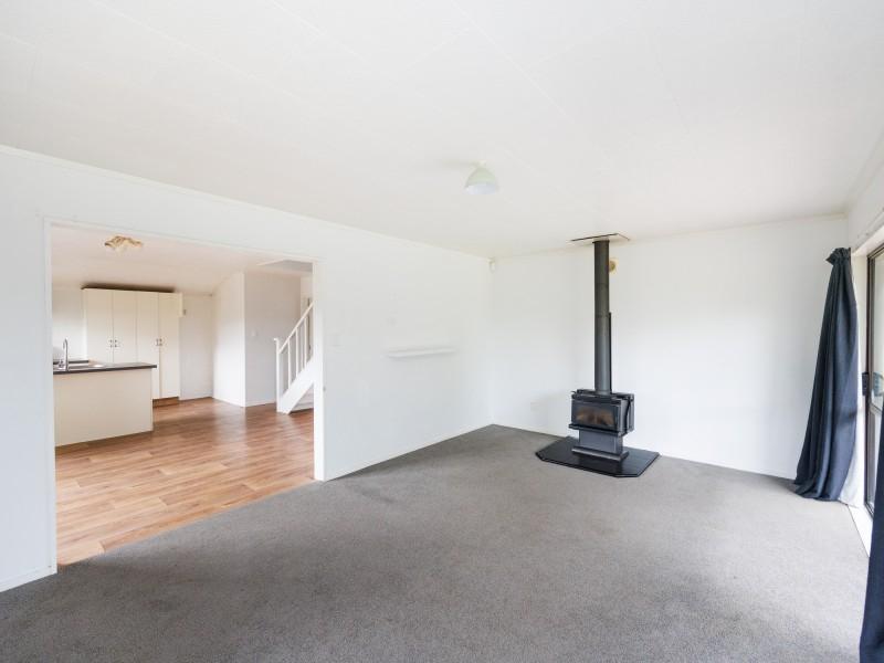 Step inside to an inviting open-plan kitchen and dining area, complemented by a separate lounge ideal for relaxed family living. A freestanding wood burner with a ducted flue ensures warmth flows throughout the home, including the upper level, while the practical family bathroom completes the interior.