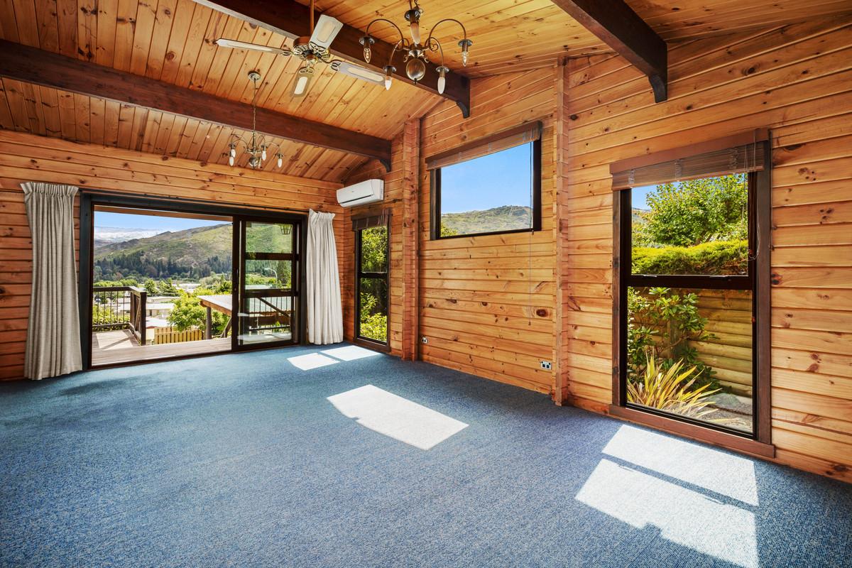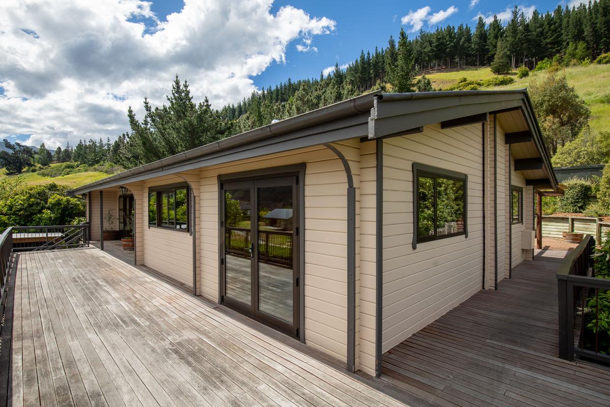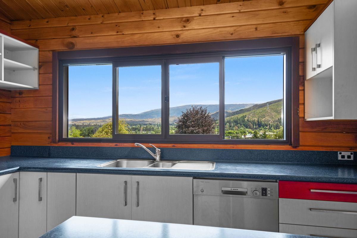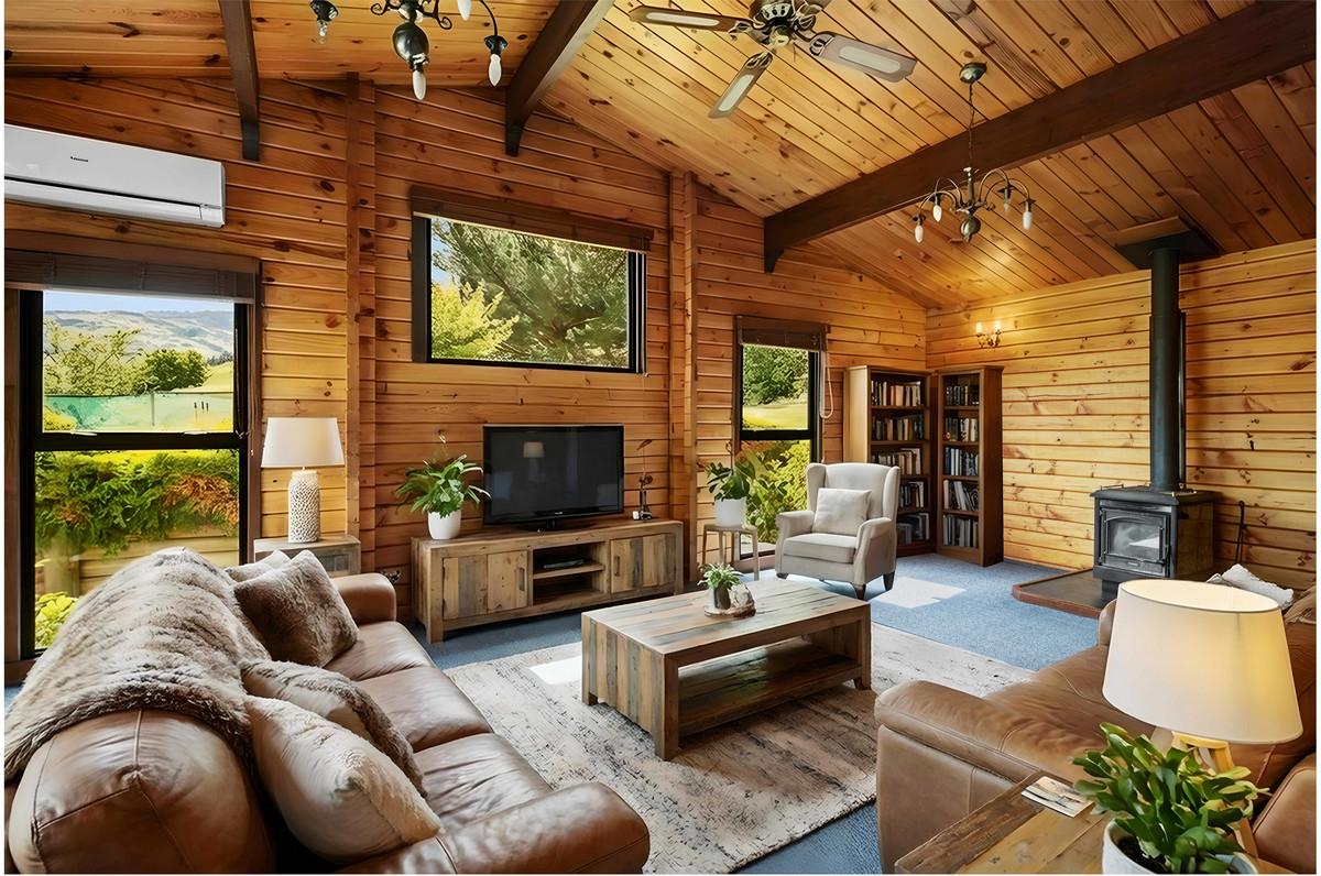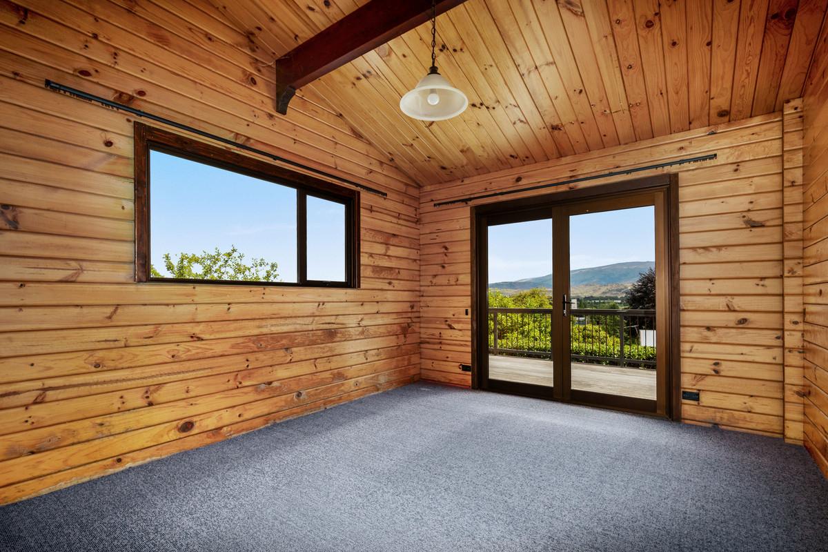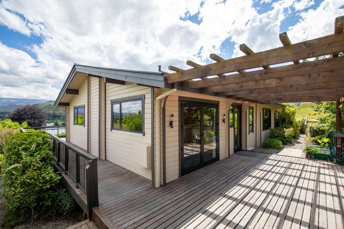 Outside, the section is filled with established trees and shrubs, providing plenty of character and a lovely sense of privacy. There's ample space to make it your own whether that's creating more garden, adding outdoor features, or simply enjoying what's already there. There is a wonderful private area behind the home for outdoor dining and relaxing around the barbecue, while along the front of the home is a large wrap around deck where one can sit and enjoy stunning views overlooking Clyde and the mountains in the distance.