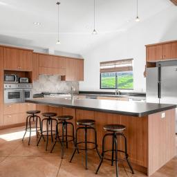 At the centre, the kitchen anchors the open-plan layout-designed for connection, conversation, and everyday ease. With a seven-burner gas cooktop, 1.5 wall oven, dual dish drawers, generous storage, and an expansive island, the space functions beautifully for family living and entertaining without pretence. The open-plan zone is breezy and relaxed, offering multiple lounging areas that allow everyone to spread out while still feeling connected. This entire space flows seamlessly to a sunny alfresco deck that captures the best of the home's aspect.