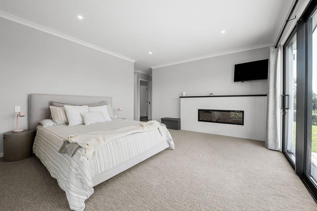 Accommodation is well-considered, offering comfort and separation. Four bedrooms include a recently added master suite, complete with an electric fireplace, outdoor access, and a luxurious ensuite featuring a tiled walk-in shower and a dual-station vanity.