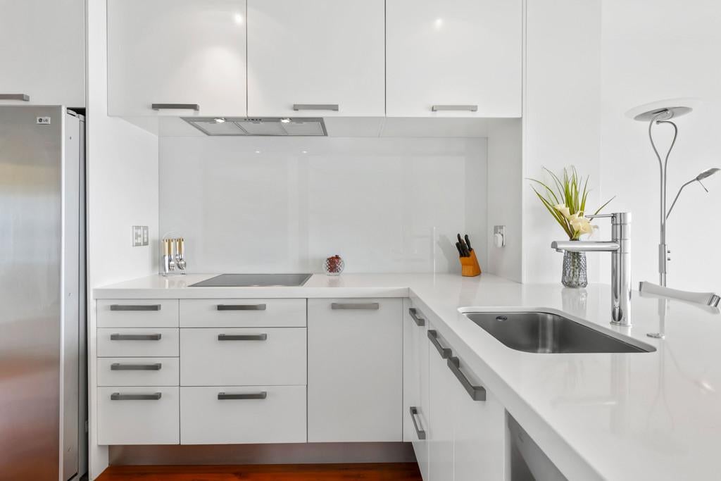 Inspired by a sense of contemporised European flair the light-filled, 80 sqm (approx.) upper floor unit is dominated by its remarkable north-facing bush-framed water panoramas. Original timber floors underpin a modern kitchen featuring composite stone breakfast bar benchtop, ample cabinetry storage, and cleverly integrated Bosch appliances. Large picture windows define an open plan living and dining area where seamless flow to a glass and stainless steel balustrade protected balcony extends both night and day entertainment options. A heat pump spreads a welcome cosy warmth to both this area and the adjacent primary bedroom also facing the water and complete with inviting walk in closet. The second double bedroom has a built in wardrobe with both share a fully tiled updated bathroom with double-basin floating vanity and sizable shower. The stacker laundry cupboard includes a tub while the property comes with its own allocated separate storage unit and single carport.