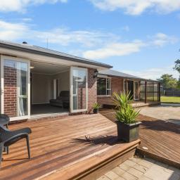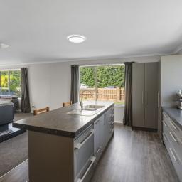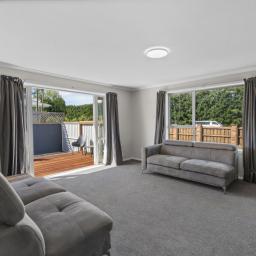 From the lounge, step outside to a lovely timber deck that connects seamlessly to the various outdoor levels, including a concrete-paved area at ground level. It's perfect for summer barbecues or even the ideal spot for a spa. This outdoor area links nicely to the four accompanying bedrooms-two large rooms with built-in wardrobes, plus two more perfect for younger children or a nursery if your family is growing. A nearby heat pump provides easy, efficient heating. The separate toilet and well-sized bathroom make morning routines a breeze. With school facilities on your doorstep-and sports just down the road- ensuring daily living runs smoothly.