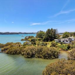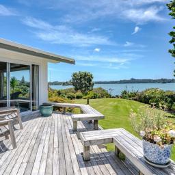 Set against the gentle rhythm of the bay, this extraordinary waterfront retreat offers a life shaped by the tides, the sunlight, and the surrounding native bush. Spread across 2.7 hectares of regenerating bush and open lawns, the property feels like a private coastal sanctuary, the kind that rarely becomes available and is cherished for generations.