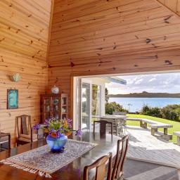 Crafted for those who feel most at home on the water, the property includes a refurbished jetty, a mooring, and effortless access to the bay. Whether you're launching the boat, heading out for an early dive, or setting off for a quiet paddle at sunrise, every day begins with the sea at your doorstep and ends with the sun melting into the horizon. As you arrive, a large picture window draws your eye straight to the sweeping coastal outlook. The home itself is a classic, enduring Lockwood design, perfectly positioned on a sheltered and north-facing site. Features include: