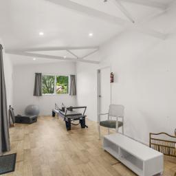 The house offers a galley style kitchen through to a dining space flowing out to front and back decks, a spacious living room and three double bedrooms. The bathroom offers large shower and there's a separate toilet. The double garage arranged as a single and fully lined studio/craft space is perfect for storage and more.