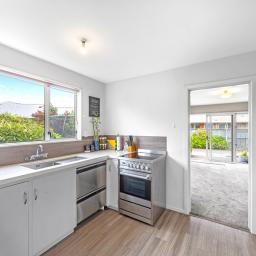 Discover a fantastic opportunity to secure your place in this popular and convenient pocket of Sockburn. Surprisingly spacious and set on a TC1 section this modernised unit offers more land than you would expect making it perfect for kids to play, pets to roam or for those who enjoy gardening and sunny outdoor living. Super warm and inviting the home features open-plan living with excellent natural light, a heat pump for all-season comfort, two bedrooms, one bathroom, a separate toilet, plus the bonus of a garage and great privacy.