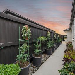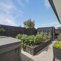 Outside, the extensively landscaped backyard is a standout with raised garden beds, espaliered fruit trees, a water feature, a garden shed, and a spa pool (included in the sale). The beautifully landscaped front garden adds to the appeal with concrete edging and a sculptural feature.