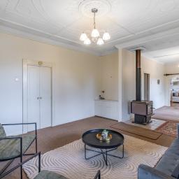 Step inside to discover spacious dining and living areas, and a decretive ceiling in the lounge area adds character. A functional kitchen sits at the heart of the home, complemented by a modern bathroom featuring an updated shower, toilet and vanity. With three generous bedrooms, there's room for the whole family. The home is partially double glazed and equipped with a multifuel burner, heat pump and night store.