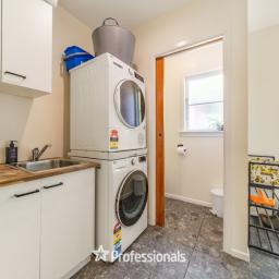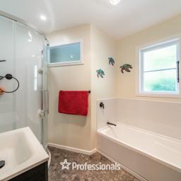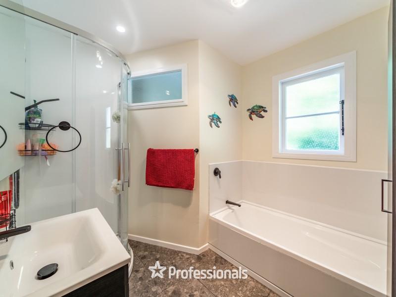 Modern Family bathroom with separate shower and separate bath. Large separate laundry. Outside offers a private rear section to create your own garden oasis.