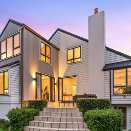 This beautifully transformed terrace home in sought after Double Grammar zone takes classic charm to the next level. Recently reclad and move-in ready, it features a brand-new roof and double-glazed joinery. Enjoy all-day sun and stunning sea views. Inside, a soaring double-height atrium welcomes you, with elegant hand-laid Morris & James tiles setting a sophisticated tone. The home offers double garaging, spacious bedrooms, and ample storage.