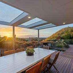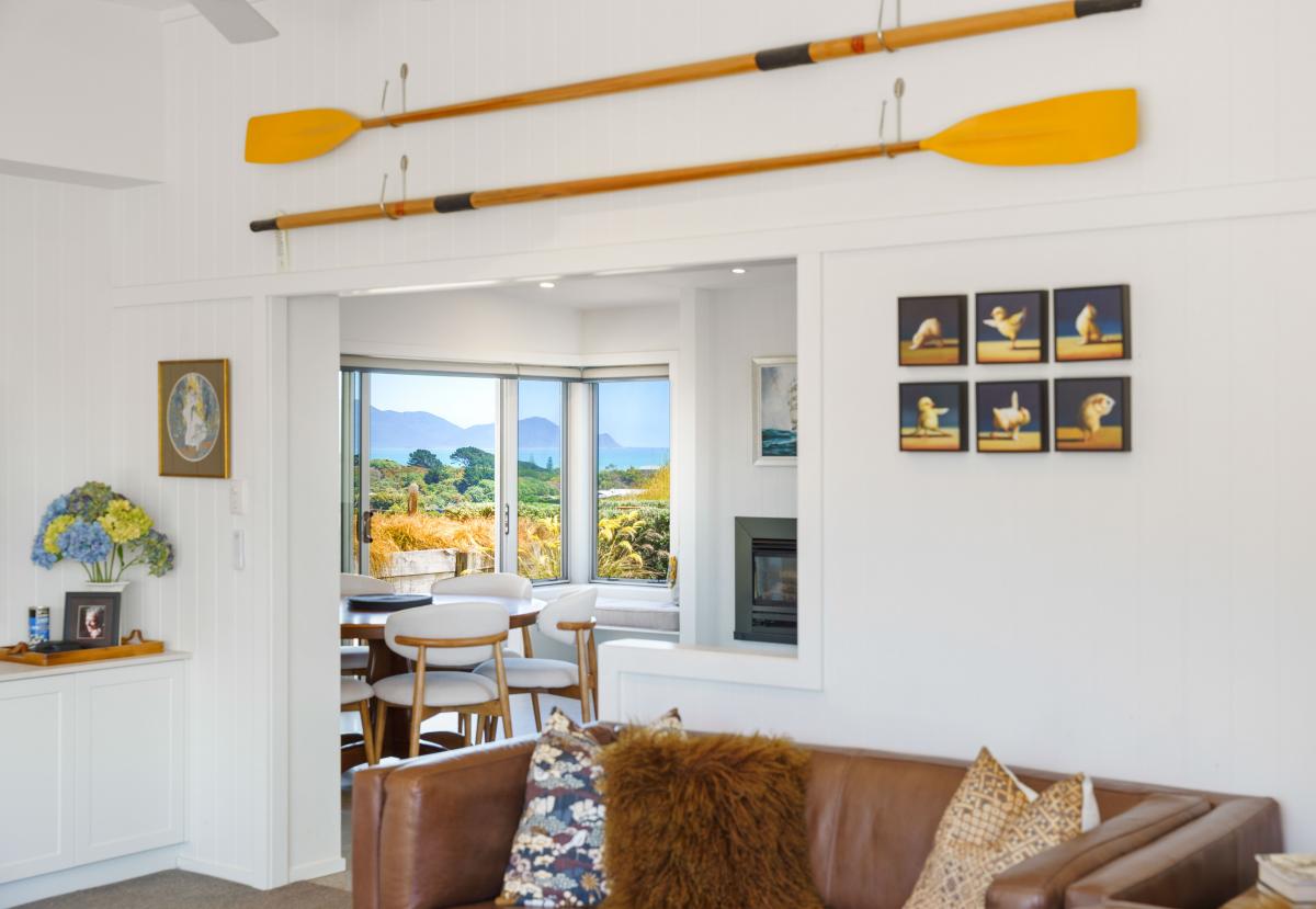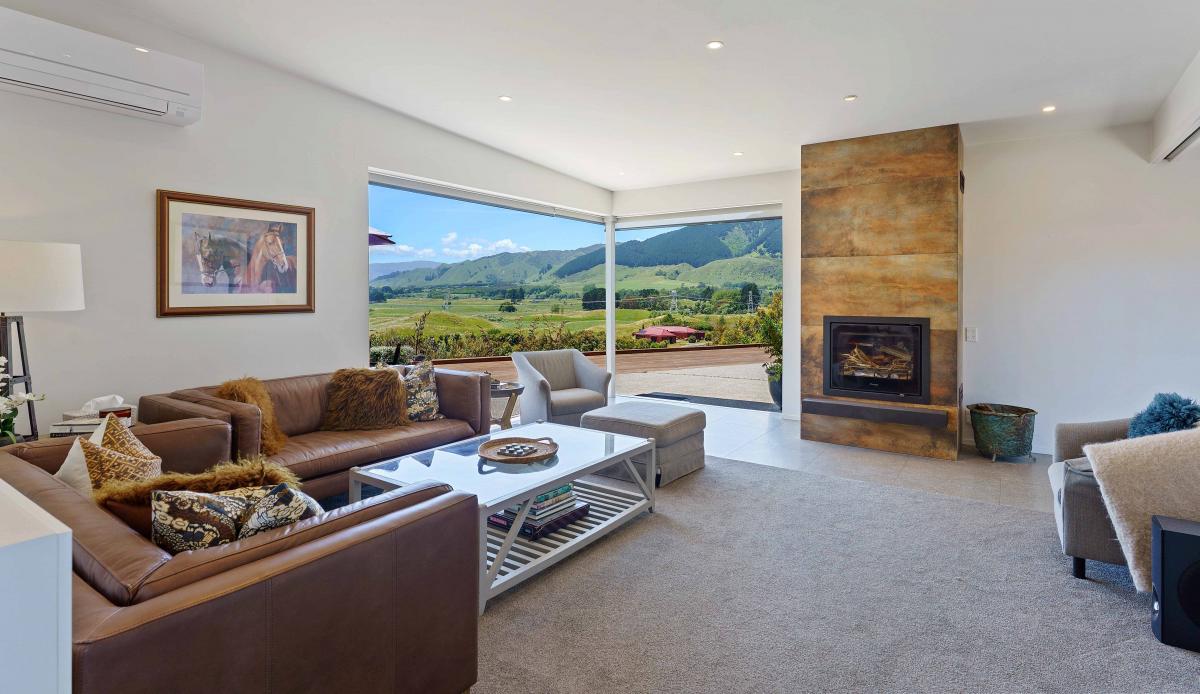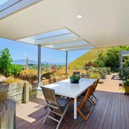 The expansive outlook is truly spectacular, with uninterrupted views of Kapiti Island, the ocean, and the mountain ranges beyond—a daily backdrop that few properties can rival.