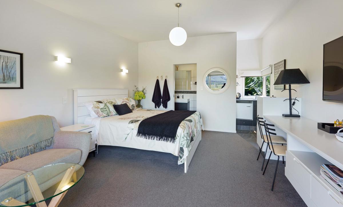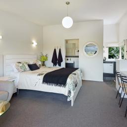 A separate studio with its own bathroom and kitchenette provides a flexible third bedroom or proven Airbnb income stream.