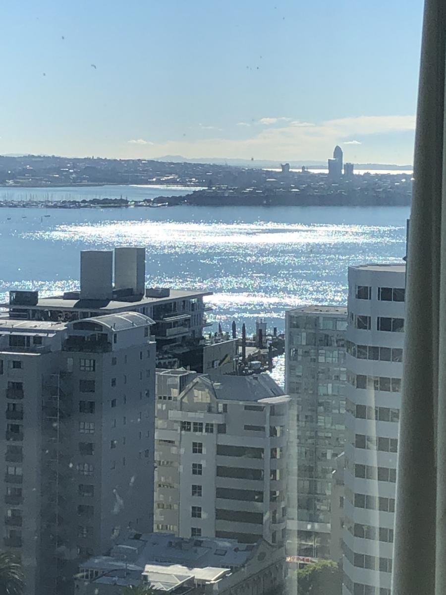 Prime corner position on the sub penthouse level enjoys wrap around views from the Harbour to the Waitaks, Albert Park and the Skytower taking centre stage.