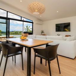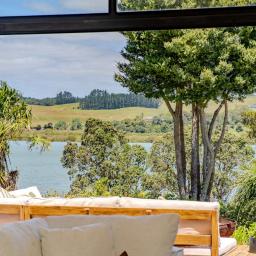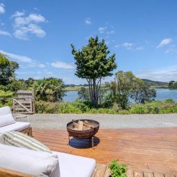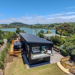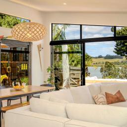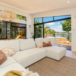 • Open plan living with high vaulted ceilings, heat pump and stunning water views