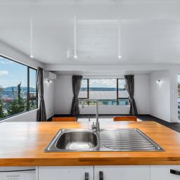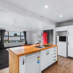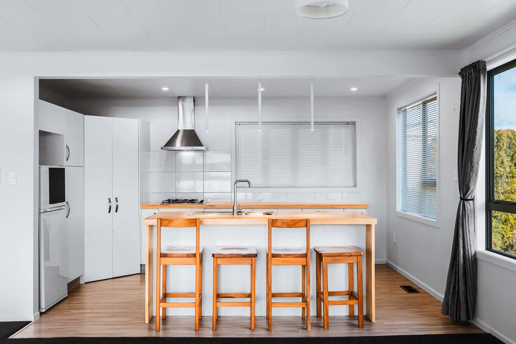Open plan living, dining and kitchen take in the sensational views, the kitchen has a gas cooktop, plenty of storage and a good-sized breakfast bar. Offering three bedrooms, a refurbished bathroom and a tucked away laundry. Ideal for family life. There is also a separate outside room that could be developed to be a multi-use space. The home has a heat pump to keep you super toasty during the winter months and takes in all day sunshine.