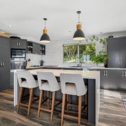 • Open plan Modern kitchen with waterfall stone breakfast bar will impress