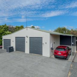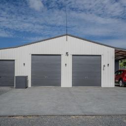 • Impressive 12 x 9m high-stud shed with 3 roller doors