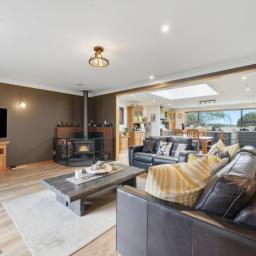 - Multiple living areas and year-round comfort with heat pumps, wood burner, DVS and wetback