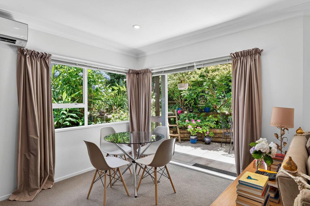 Conveniently located in Haast St, by the Upland Road shops, yet quietly tucked away down a driveway in a no exit street, this charming home built of brick and cedar is surrounded by a lush garden for enjoying outdoor living through French doors opening to the sheltered patios from both the lounge and dining areas.
