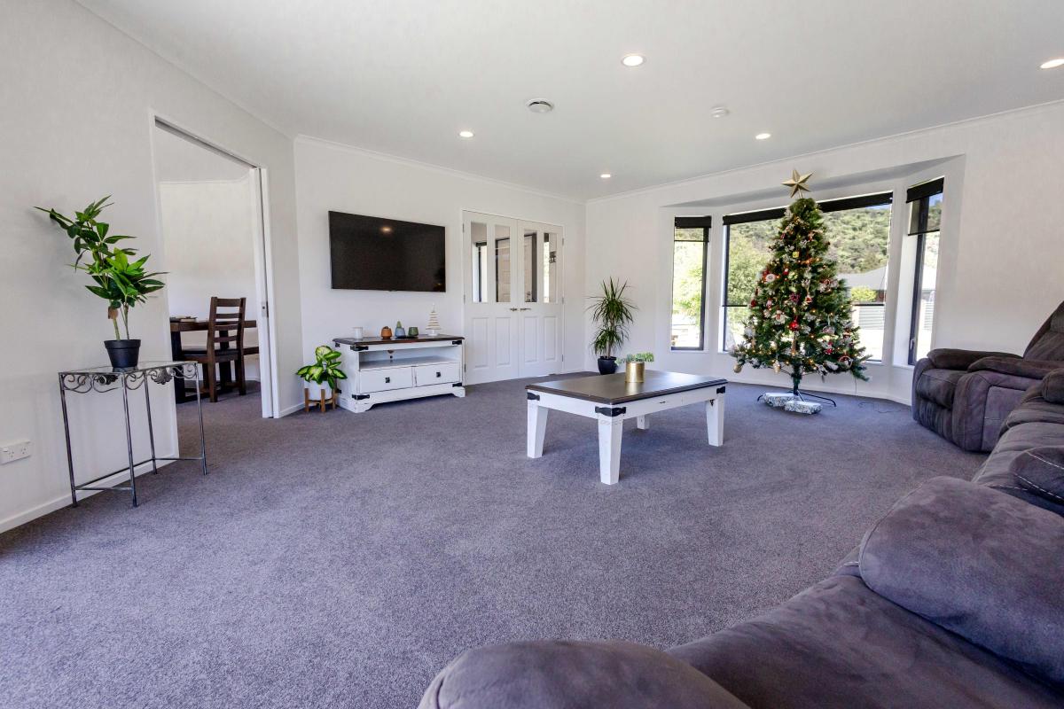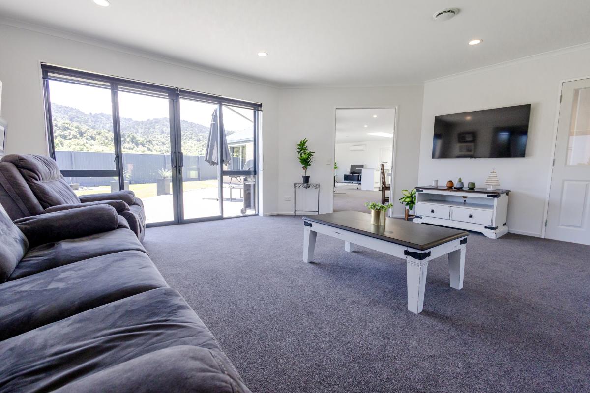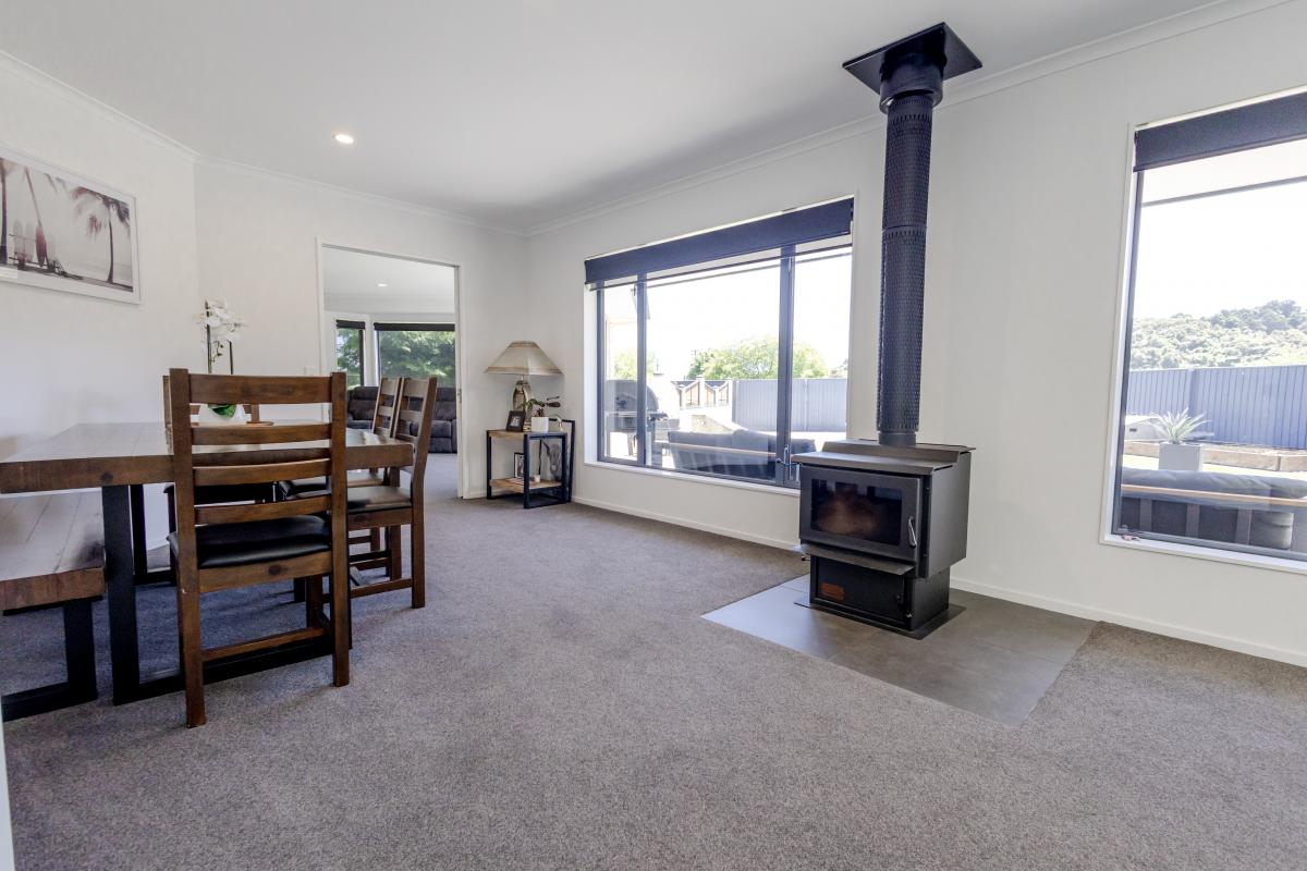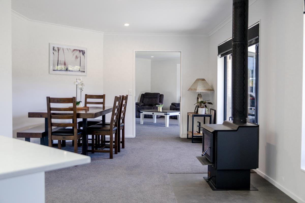 The master bedroom offers peace and privacy with its own ensuite, while the family bathroom is thoughtfully designed with a separate toilet, bath and shower — because mornings are smoother when everyone has their own space. A separate laundry, internal access garage, and smart heating options (woodburner, HRV system + 2 heat pumps) add extra practicality and comfort year-round.
