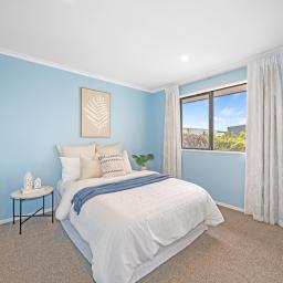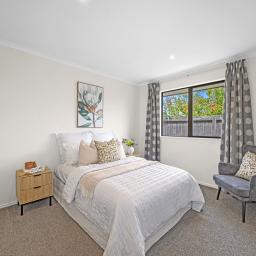 Set on an easier-care, well-established 506 sqm fully fenced section with full underground garden irrigation, there is plenty of room for kids and pets to play, heaps of storage, plenty of off-street parking and a double internal-access garage. Comfort is assured year-round with full insulation and double-glazed windows. Additional chattels include a mower (to mow the berm), outdoor table and bench seating, microwave, freestanding garage cupboard and the gorgeous garden art.