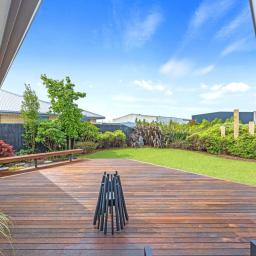 A true standout in every sense, this relatively new Milestone Show Home, built in 2017, proudly won the Registered Master Builders House of the Year Gold Award and it is easy to see why. From the moment you arrive, you are welcomed by a beautiful Robinia Lace Lady tree, and the garden also has beautiful red maple and magnolia trees with jasmine scenting the air and setting the tone for something special.