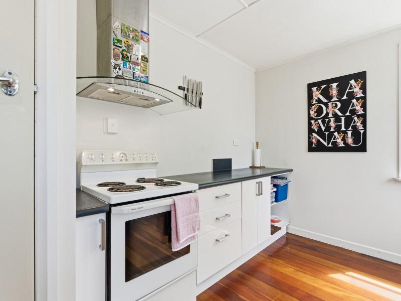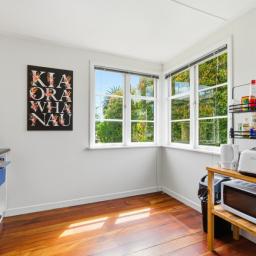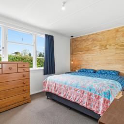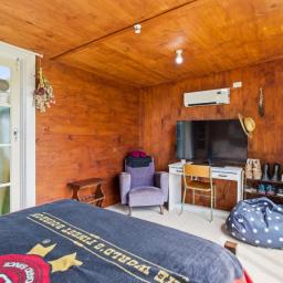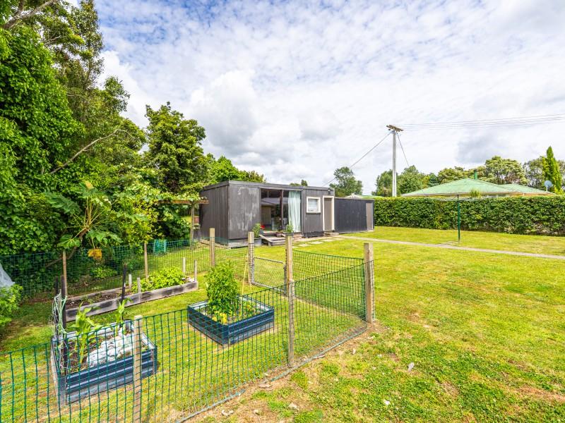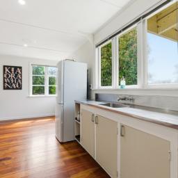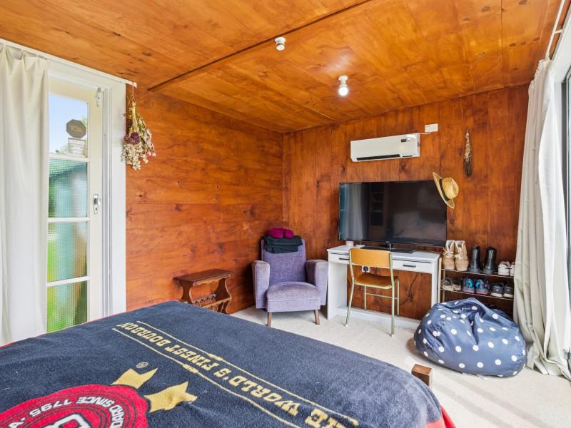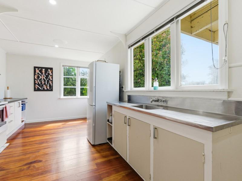 To the front of the home is the light and airy lounge that features French doors that flow onto the patio, while heating in the home is well covered with a wood burner, heat pump and HRV system for year-round comfort. A modernised bathroom adds everyday appeal and throughout the home are the polished native timber floors.