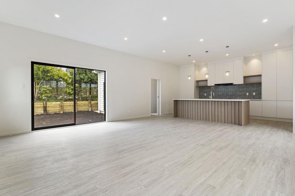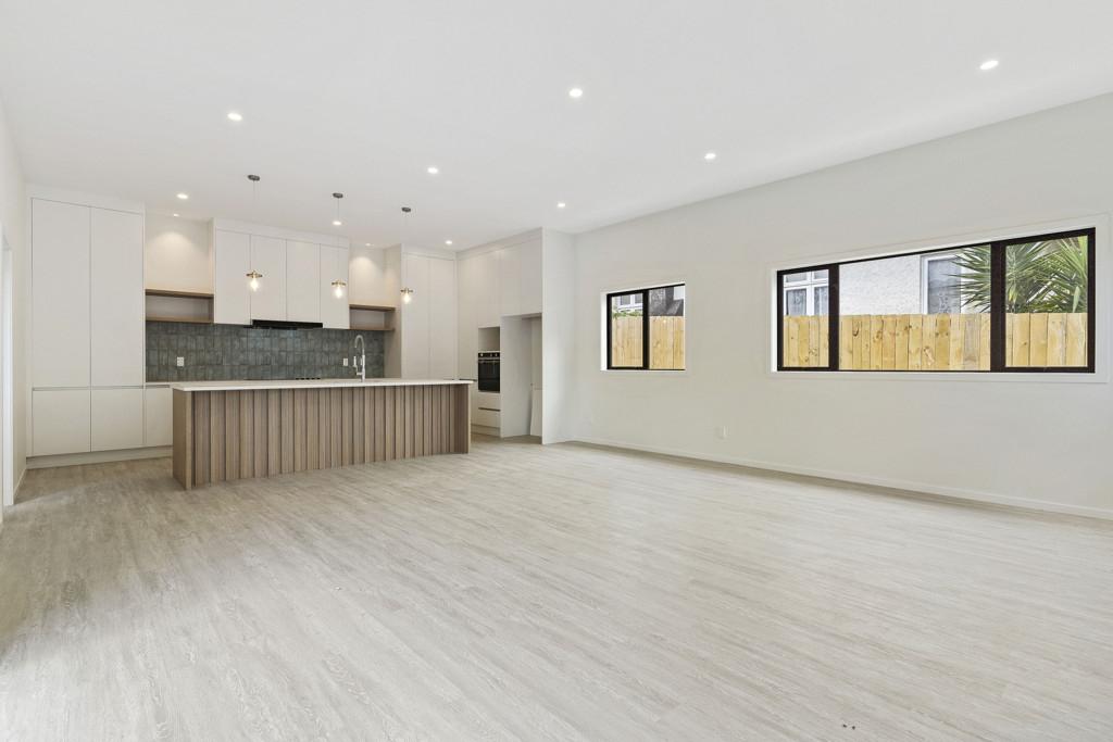 Gourmet Living: A sun-filled, open-plan kitchen, dining, and living area. Features a modern cooktop, premium appliances, and ample storage for the home chef.