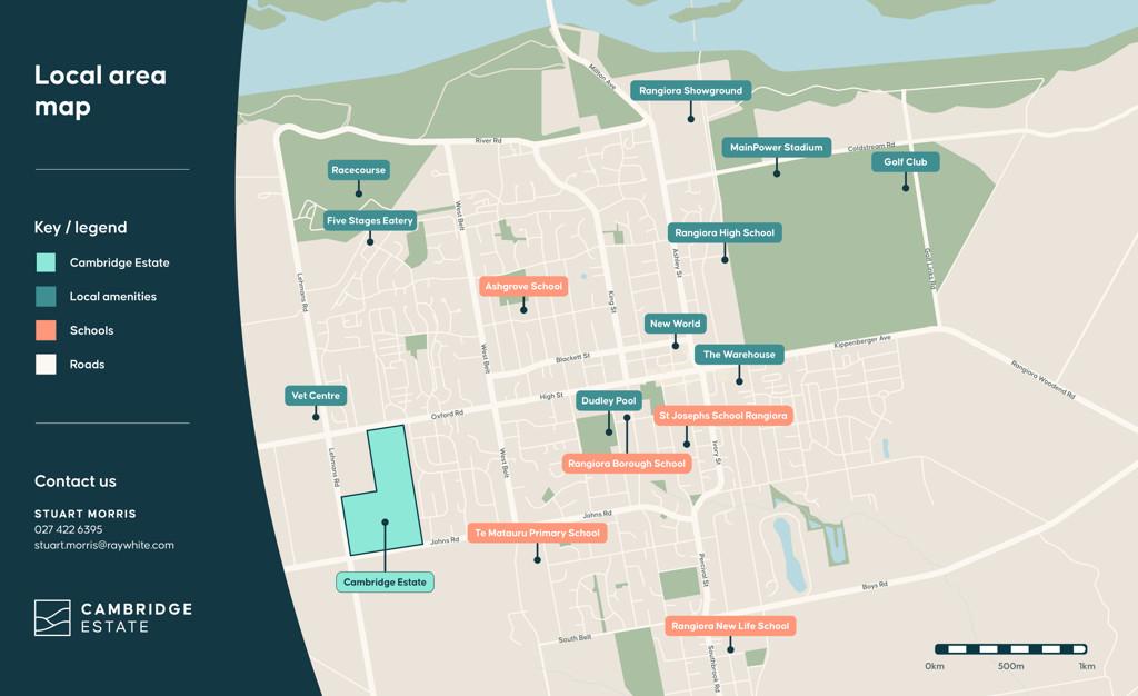 Cambridge Estate is where you want to be. Positioned so close to the amenities, with an approximate 30 minute drive into Christchurch City and just 2km from Rangiora's major retail precinct, which hosts a vast range of cafes, restaurants, supermarkets, recreation, shopping, parks and reserves, the list goes on. Education is also easily accessed with pre-schools and Te Matauru Primary School close by (and the local High School on East Belt).