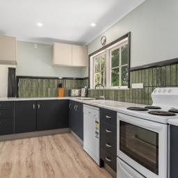 The refurbished home is warm, light, and welcoming, featuring a new modern kitchen and bathroom, three double bedrooms and open-plan living filled with natural light. French doors open from the living area onto a sunny patio, perfect for entertaining or enjoying quiet mornings. The home is finished in light neutral tones, ideal to add your personal touches. The Kent-style wood fire keeps the home warm in the cooler months.