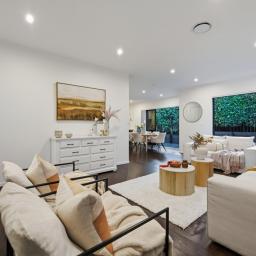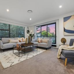 Set on a sunny corner site, it combines low-maintenance living with generous proportions, offering flexibility ideal for families or multi-generational households.