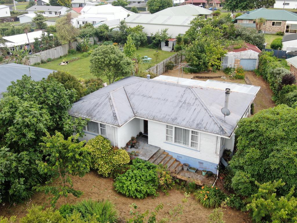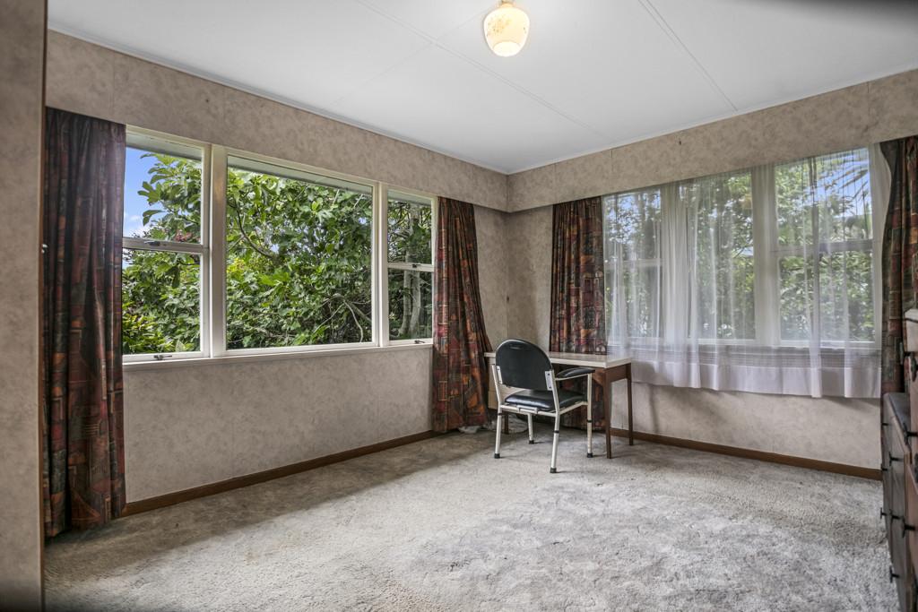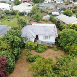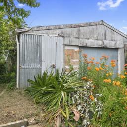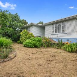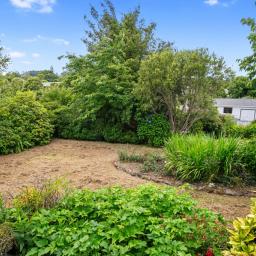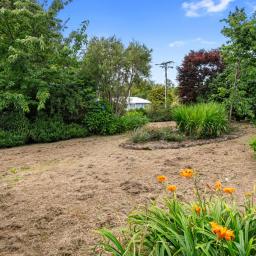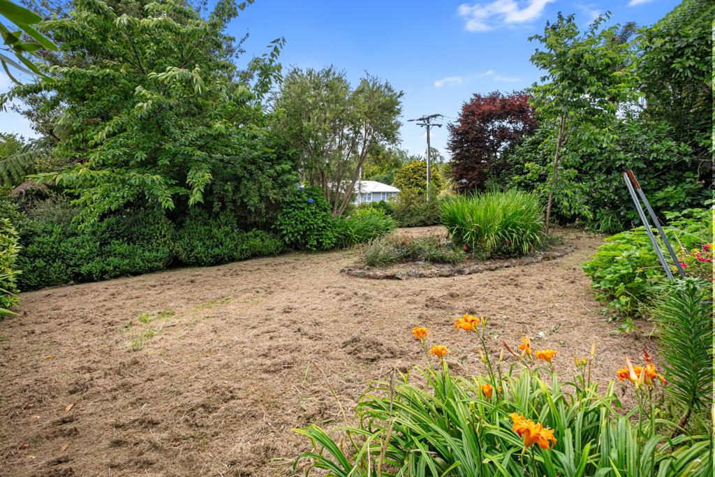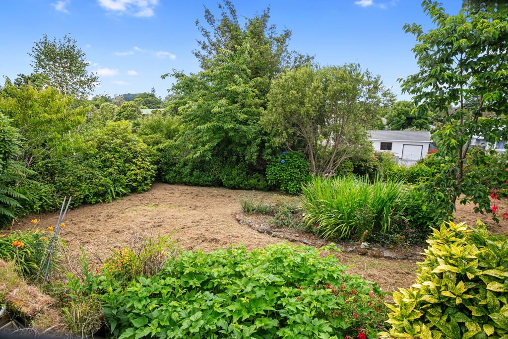 The section is of mixed contour and includes numerous established fruit trees-peach, plum, lemon, loquat, and feijoa-along with a glasshouse!
